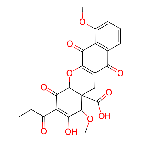 | SMILES | CCC(=O)C1=C(C(C2(CC3=C(C(=O)C4=C(C3=O)C=CC=C4OC)OC2C1=O)C(=O)O)OC)O |