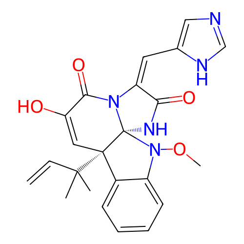 | SMILES | CC(C)(C=C)[C@]12C=C(C(=O)N\3[C@@]1(NC(=O)/C3=C\C4=CN=CN4)N(C5=CC=CC=C25)OC)O |