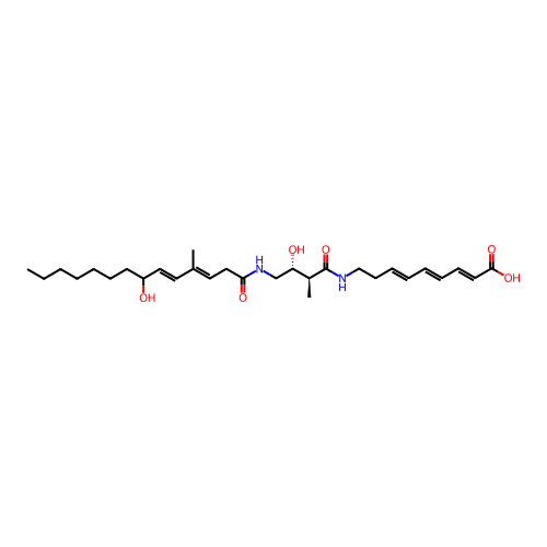 | SMILES | CCCCCCCC(/C=C/C(=C/CC(=O)NC[C@@H]([C@H](C)C(=O)NCC/C=C/C=C/C=C/C(=O)O)O)/C)O |