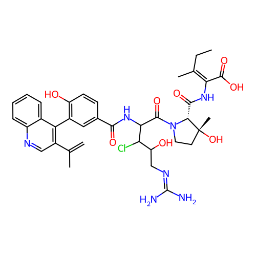 | SMILES | CC/C(=C(\C(=O)O)/NC(=O)[C@@H]1[C@](CCN1C(=O)C(C(C(CN=C(N)N)O)Cl)NC(=O)C2=CC(=C(C=C2)O)C3=C(C=NC4=CC=CC=C43)C(=C)C)(C)O)/C |
