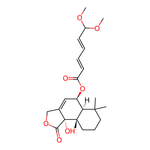 | InChI | InChI=1S/C23H32O7/c1-21(2)11-8-12-22(3)19(21)16(13-15-14-29-20(25)23(15,22)26)30-17(24)9-6-7-10-18(27-4)28-5/h6-7,9-10,13,16,18-19,26H,8,11-12,14H2,1-5H3/b9-6+,10-7+/t16-,19+,22+,23+/m1/s1 |