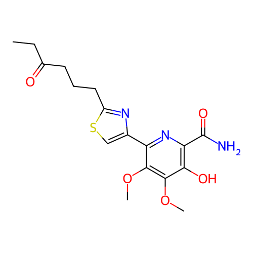 | SMILES | CCC(=O)CCCC1=NC(=CS1)C2=NC(=C(C(=C2OC)OC)O)C(=O)N |