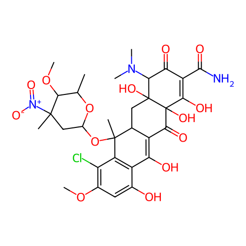 | SMILES | CC1C(C(CC(O1)OC2(C3CC4(C(C(=O)C(=C(C4(C(=O)C3=C(C5=C2C(=C(C=C5O)OC)Cl)O)O)O)C(=O)N)N(C)C)O)C)(C)[N+](=O)[O-])OC |