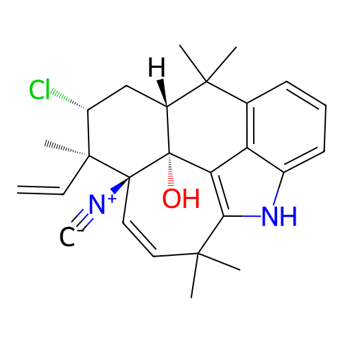 | SMILES | C[C@@]1([C@@H](C[C@H]2[C@@]3([C@@]1(C=CC(C4=C3C5=C(C2(C)C)C=CC=C5N4)(C)C)[N+]#[C-])O)Cl)C=C |