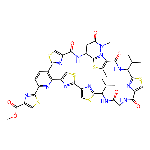 | SMILES | CC1=C2C(=O)NC(C3=NC(=CS3)C(=O)NCC(=O)NC(C4=NC(=CS4)C5=NC(=CS5)C6=C(C=CC(=N6)C7=NC(=CS7)C(=O)OC)C8=NC(=CS8)C(=O)NC(C(=N2)S1)CC(=O)NC)C(C)C)C(C)C |