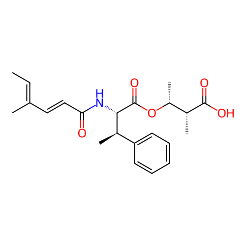 | InChI | InChI=1S/C22H29NO5/c1-6-14(2)12-13-19(24)23-20(16(4)18-10-8-7-9-11-18)22(27)28-17(5)15(3)21(25)26/h6-13,15-17,20H,1-5H3,(H,23,24)(H,25,26)/b13-12+,14-6+/t15-,16-,17-,20+/m1/s1 |