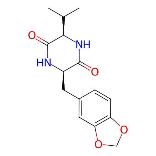 | SMILES | CC(C)[C@@H]1C(=O)N[C@@H](C(=O)N1)CC2=CC3=C(C=C2)OCO3 |