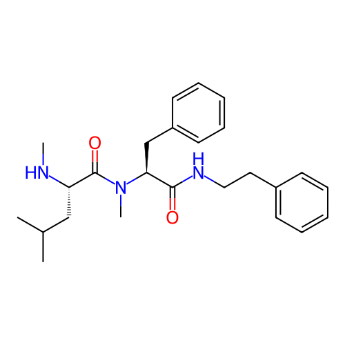 | SMILES | CC(C)C[C@@H](C(=O)N(C)[C@@H](CC1=CC=CC=C1)C(=O)NCCC2=CC=CC=C2)NC |
