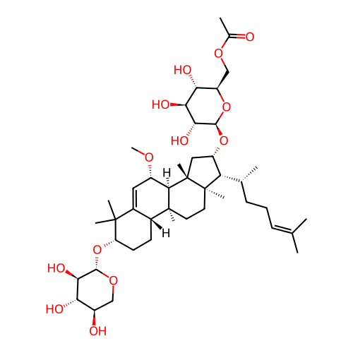 | SMILES | C[C@H](CCC=C(C)C)[C@H]1[C@H](C[C@@]2([C@@]1(CC[C@@]3([C@H]2[C@H](C=C4[C@H]3CC[C@@H](C4(C)C)O[C@H]5[C@@H]([C@H]([C@@H](CO5)O)O)O)OC)C)C)C)O[C@H]6[C@@H]([C@H]([C@@H]([C@H](O6)COC(=O)C)O)O)O |
