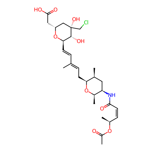 | SMILES | C[C@H]1C[C@H]([C@H](O[C@H]1C/C=C(\C)/C=C/[C@@H]2[C@H]([C@@](C[C@H](O2)CC(=O)O)(CCl)O)O)C)NC(=O)/C=C\[C@H](C)OC(=O)C |