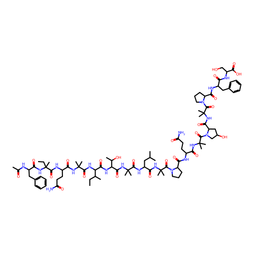 | SMILES | CCC(C)C(C(=O)NC(C(C)O)C(=O)NC(C)(C)C(=O)NC(CC(C)C)C(=O)NC(C)(C)C(=O)N1CCCC1C(=O)NC(CCC(=O)N)C(=O)NC(C)(C)C(=O)N2CC(CC2C(=O)NC(C)(C)C(=O)N3CCCC3C(=O)NC(CC4=CC=CC=C4)C(=O)NC(CO)C(=O)O)O)NC(=O)C(C)(C)NC(=O)C(CCC(=O)N)NC(=O)C(C)(CC)NC(=O)C(CC5=CC=CC=C5)NC(=O)C |