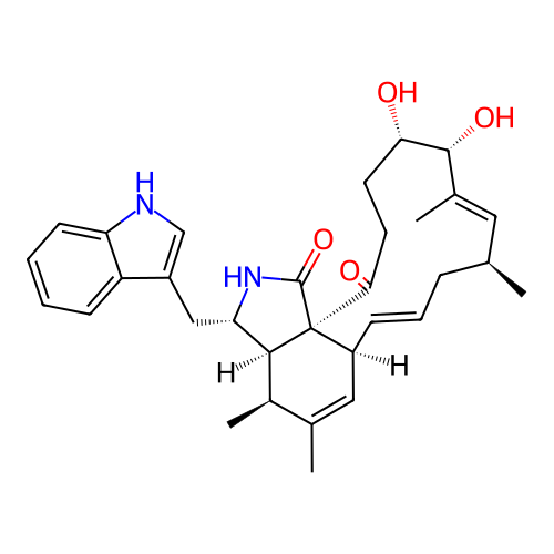| InChI | InChI=1S/C32H40N2O4/c1-18-8-7-9-23-15-19(2)21(4)29-26(16-22-17-33-25-11-6-5-10-24(22)25)34-31(38)32(23,29)28(36)13-12-27(35)30(37)20(3)14-18/h5-7,9-11,14-15,17-18,21,23,26-27,29-30,33,35,37H,8,12-13,16H2,1-4H3,(H,34,38)/t18-,21+,23-,26-,27-,29-,30+,32+/m0/s1 |