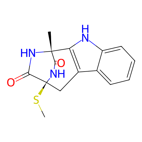 | SMILES | C[C@]12C3=C(C[C@](C(=O)N1)(NC2=O)SC)C4=CC=CC=C4N3 |