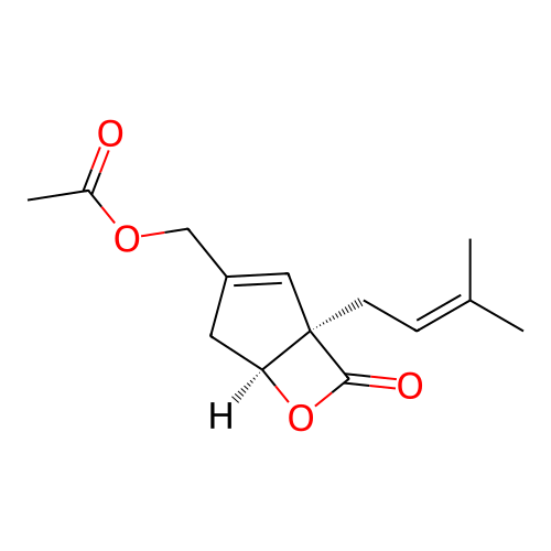 | InChI | InChI=1S/C14H18O4/c1-9(2)4-5-14-7-11(8-17-10(3)15)6-12(14)18-13(14)16/h4,7,12H,5-6,8H2,1-3H3/t12-,14+/m0/s1 |