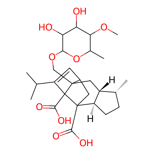 | InChI | InChI=1S/C27H40O9/c1-12(2)18-8-15-9-26(23(30)31)17-7-6-13(3)16(17)10-25(15,27(18,26)24(32)33)11-35-22-20(29)19(28)21(34-5)14(4)36-22/h8,12-17,19-22,28-29H,6-7,9-11H2,1-5H3,(H,30,31)(H,32,33)/t13-,14?,15?,16-,17-,19?,20?,21?,22?,25?,26?,27?/m1/s1 |