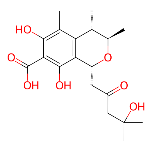 | InChI | InChI=1S/C19H26O7/c1-8-10(3)26-12(6-11(20)7-19(4,5)25)14-13(8)9(2)16(21)15(17(14)22)18(23)24/h8,10,12,21-22,25H,6-7H2,1-5H3,(H,23,24)/t8-,10-,12-/m1/s1 |