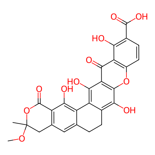 | InChI | InChI=1S/C27H20O11/c1-27(36-2)8-10-7-9-3-4-11-16(14(9)21(30)15(10)26(35)38-27)22(31)18-23(32)17-13(37-24(18)20(11)29)6-5-12(19(17)28)25(33)34/h5-7,28-31H,3-4,8H2,1-2H3,(H,33,34) |