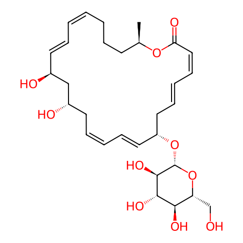 | SMILES | C[C@@H]1CCC/C=C\C=C\[C@@H](C[C@H](C/C=C\C=C\[C@H](C/C=C/C=C\C(=O)O1)O[C@H]2[C@@H]([C@H]([C@@H]([C@H](O2)CO)O)O)O)O)O |