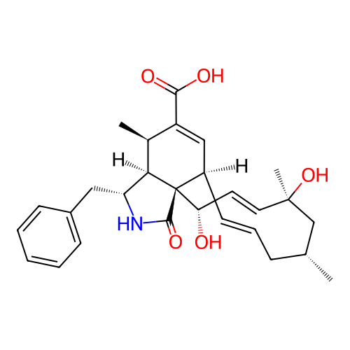 | InChI | InChI=1S/C28H35NO5/c1-17-8-7-11-20-15-21(25(31)32)18(2)24-22(14-19-9-5-4-6-10-19)29-26(33)28(20,24)23(30)12-13-27(3,34)16-17/h4-7,9-13,15,17-18,20,22-24,30,34H,8,14,16H2,1-3H3,(H,29,33)(H,31,32)/b11-7+,13-12+/t17-,18+,20-,22-,23+,24-,27-,28+/m1/s1 |