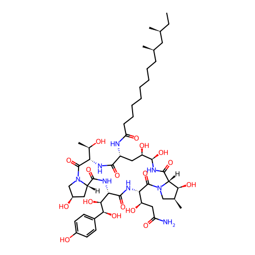 | SMILES | CC[C@H](C)C[C@H](C)CCCCCCCCC(=O)N[C@@H]1C[C@H]([C@H](NC(=O)[C@@H]2[C@H]([C@H](CN2C(=O)[C@@H](NC(=O)[C@@H](NC(=O)[C@@H]3C[C@H](CN3C(=O)[C@@H](NC1=O)[C@@H](C)O)O)[C@@H]([C@H](C4=CC=C(C=C4)O)O)O)[C@@H](CC(=O)N)O)C)O)O)O |