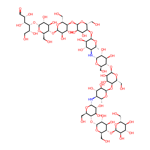 | SMILES | C[C@@H]1[C@H]([C@@H]([C@H]([C@H](O1)O[C@@H]2[C@H](O[C@@H]([C@@H]([C@H]2O)O)O[C@@H]3[C@H](O[C@@H]([C@@H]([C@H]3O)O)N[C@@H]4[C@H](O[C@@H]([C@@H]([C@H]4O)O)O[C@@H]5[C@H](O[C@@H]([C@@H]([C@H]5O)O)O[C@@H]6[C@H](O[C@@H]([C@@H]([C@H]6O)O)O[C@@H]7[C@H](O[C@@H]([C@@H]([C@H]7O)O)O[C@H]([C@@H](CO)O)[C@@H]([C@H](C=O)O)O)CO)CO)CO)C)CO)CO)O)O)N[C@@H]8[C@@H]([C@H]([C@@H]([C@H](O8)CO)O[C@@H]9[C@@H]([C@H]([C@@H]([C@H](O9)CO)O[C@@H]1[C@@H]([C@H]([C@@H]([C@H](O1)CO)O)O)O)O)O)O)O |
