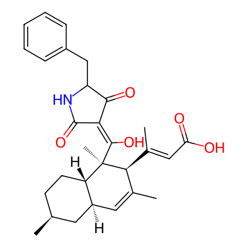 | SMILES | C[C@H]1CC[C@H]2[C@H](C1)C=C([C@@H]([C@]2(C)C(=C3C(=O)C(NC3=O)CC4=CC=CC=C4)O)C(=CC(=O)O)C)C |