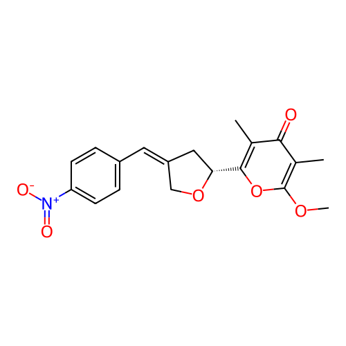 | SMILES | CC1=C(OC(=C(C1=O)C)OC)[C@H]2C/C(=C/C3=CC=C(C=C3)[N+](=O)[O-])/CO2 |