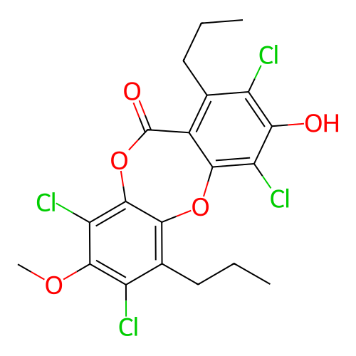 | SMILES | CCCC1=C2C(=C(C(=C1Cl)O)Cl)OC3=C(C(=C(C(=C3OC2=O)Cl)OC)Cl)CCC |