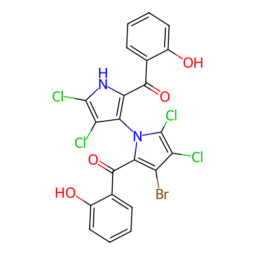| SMILES | C1=CC=C(C(=C1)C(=O)C2=C(C(=C(N2)Cl)Cl)N3C(=C(C(=C3Cl)Cl)Br)C(=O)C4=CC=CC=C4O)O |