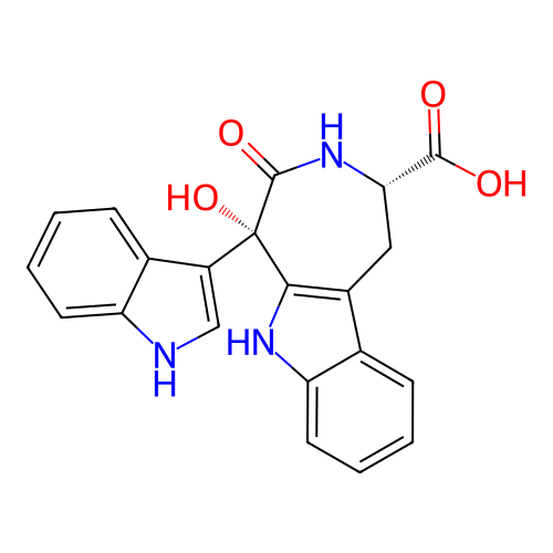 | InChI | InChI=1S/C21H17N3O4/c25-19(26)17-9-13-11-5-1-4-8-16(11)23-18(13)21(28,20(27)24-17)14-10-22-15-7-3-2-6-12(14)15/h1-8,10,17,22-23,28H,9H2,(H,24,27)(H,25,26)/t17-,21-/m0/s1 |