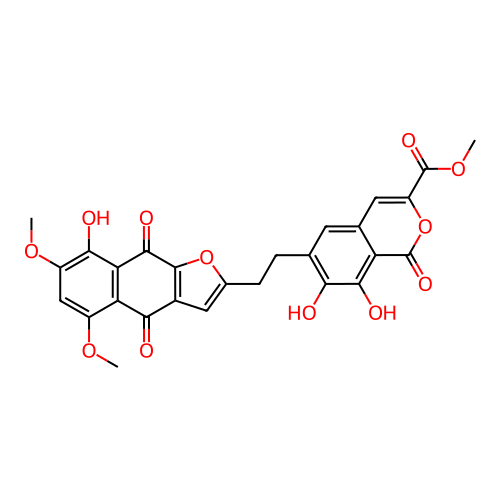 | SMILES | COC1=CC(=C(C2=C1C(=O)C3=C(C2=O)OC(=C3)CCC4=C(C(=C5C(=C4)C=C(OC5=O)C(=O)OC)O)O)O)OC |
