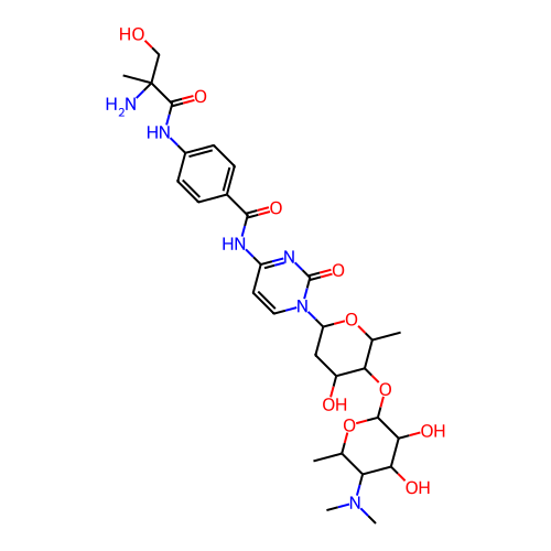 | SMILES | CC1C(C(C(C(O1)OC2C(OC(CC2O)N3C=CC(=NC3=O)NC(=O)C4=CC=C(C=C4)NC(=O)C(C)(CO)N)C)O)O)N(C)C |