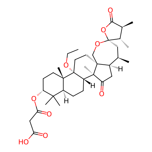 | InChI | InChI=1S/C36H54O9/c1-9-42-35-15-14-34-19-43-36(22(4)21(3)30(41)45-36)18-20(2)23(34)16-26(37)33(34,8)25(35)11-10-24-31(5,6)27(12-13-32(24,35)7)44-29(40)17-28(38)39/h20-25,27H,9-19H2,1-8H3,(H,38,39)/t20-,21+,22+,23-,24+,25+,27-,32+,33-,34+,35-,36+/m1/s1 |