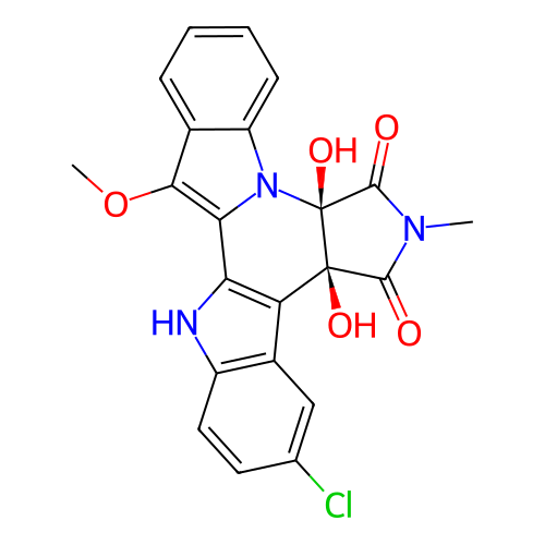 | SMILES | CN1C(=O)[C@@]2(C3=C(C4=C(C5=CC=CC=C5N4[C@@]2(C1=O)O)OC)NC6=C3C=C(C=C6)Cl)O |