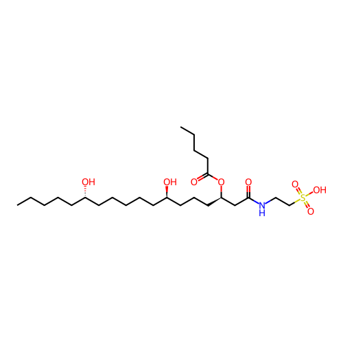 | SMILES | CCCCC[C@@H](CCCCC[C@H](CCC[C@H](CC(=O)NCCS(=O)(=O)O)OC(=O)CCCC)O)O |