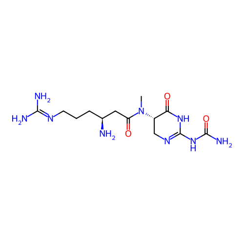 | InChI | InChI=1S/C13H25N9O3/c1-22(8-6-19-13(20-10(8)24)21-12(17)25)9(23)5-7(14)3-2-4-18-11(15)16/h7-8H,2-6,14H2,1H3,(H4,15,16,18)(H4,17,19,20,21,24,25)/t7-,8-/m0/s1 |
