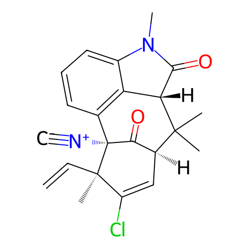 | SMILES | C[C@]1(C(=C[C@H]2C(=O)[C@@]1(C3=C4[C@@H](C2(C)C)C(=O)N(C4=CC=C3)C)[N+]#[C-])Cl)C=C |