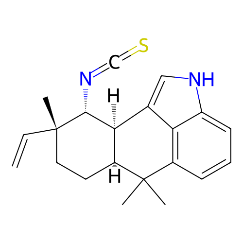| SMILES | C[C@@]1(CC[C@H]2[C@@H]([C@H]1N=C=S)C3=CNC4=CC=CC(=C43)C2(C)C)C=C |