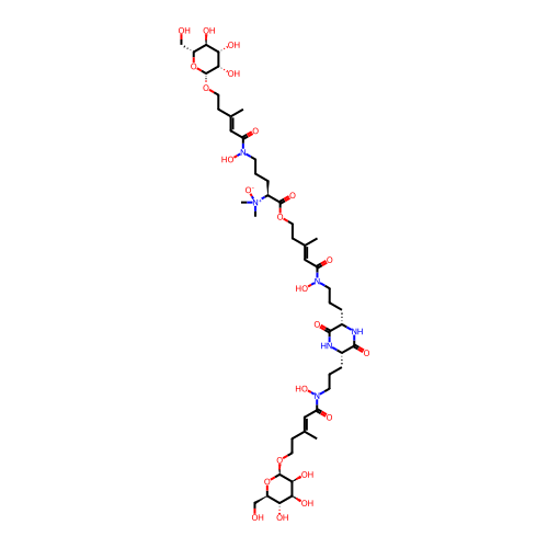 | SMILES | C/C(=C\C(=O)N(CCC[C@H]1C(=O)N[C@H](C(=O)N1)CCCN(C(=O)/C=C(\C)/CCOC(=O)[C@H](CCCN(C(=O)/C=C(\C)/CCO[C@H]2[C@H]([C@H]([C@@H]([C@H](O2)CO)O)O)O)O)[N+](C)(C)[O-])O)O)/CCO[C@H]3[C@H]([C@H]([C@@H]([C@H](O3)CO)O)O)O |