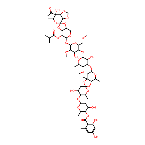 | SMILES | CC1C(C(CC(O1)OC2C(OC3(CC2O)OC4C(OC(CC4(O3)C)OC5C(C(OC(C5OC)C)OC6C(OC(C(C6O)OC)OC7C(C8C(CO7)OC9(O8)C1C(C(C(O9)C)(C(=O)C)O)OCO1)OC(=O)C(C)C)COC)O)C)C)O)OC(=O)C1=C(C=C(C=C1C)O)O |