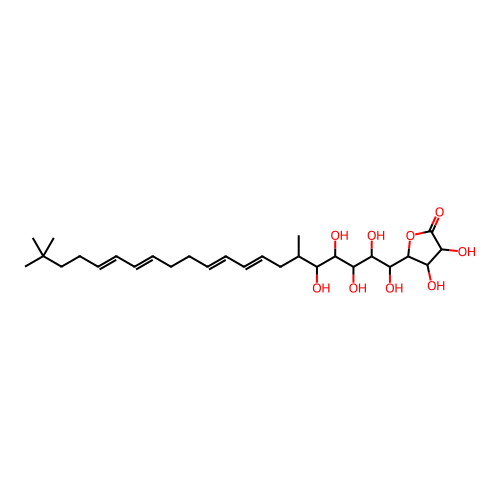 | SMILES | CC(CC=CC=CCCC=CC=CCCC(C)(C)C)C(C(C(C(C(C1C(C(C(=O)O1)O)O)O)O)O)O)O |