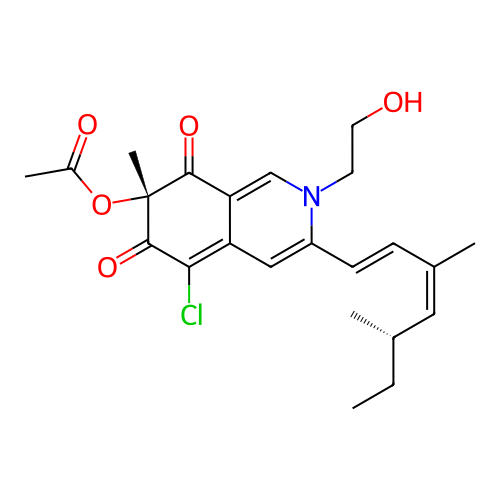| SMILES | CC[C@H](C)/C=C(/C)\C=C\C1=CC2=C(C(=O)[C@](C(=O)C2=CN1CCO)(C)OC(=O)C)Cl |