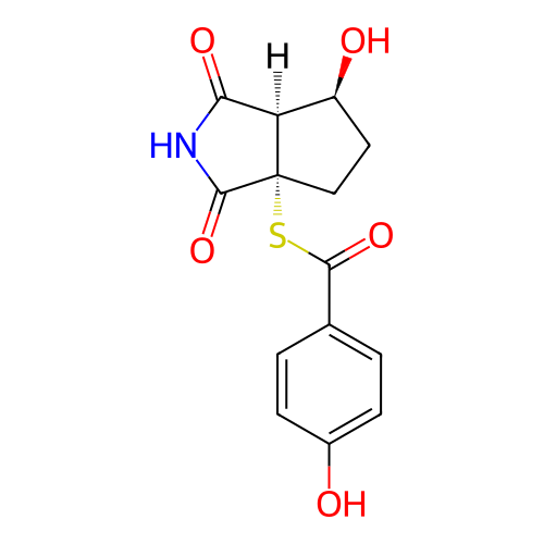 | SMILES | C1C[C@@]2([C@H]([C@H]1O)C(=O)NC2=O)SC(=O)C3=CC=C(C=C3)O |