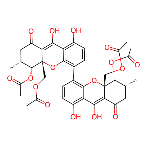 | InChI | InChI=1S/C38H38O16/c1-15-11-25(45)29-31(47)27-23(43)9-7-21(33(27)53-37(29,13-49-17(3)39)35(15)51-19(5)41)22-8-10-24(44)28-32(48)30-26(46)12-16(2)36(52-20(6)42)38(30,54-34(22)28)14-50-18(4)40/h7-10,15-16,35-36,43-44,47-48H,11-14H2,1-6H3/t15-,16-,35-,36-,37+,38+/m1/s1 |