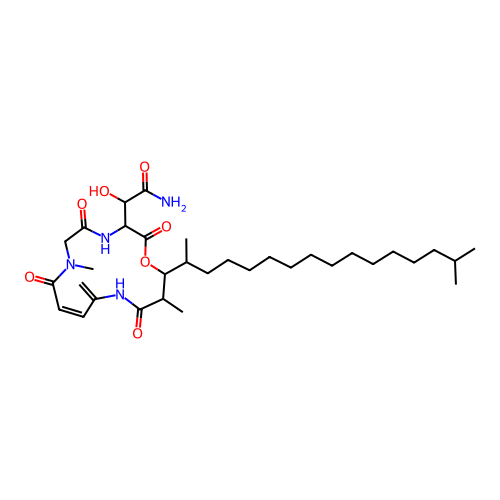 | SMILES | CC1C(OC(=O)C(NC(=O)CN(C(=O)/C=C\C(=C)NC1=O)C)C(C(=O)N)O)C(C)CCCCCCCCCCCCC(C)C |
