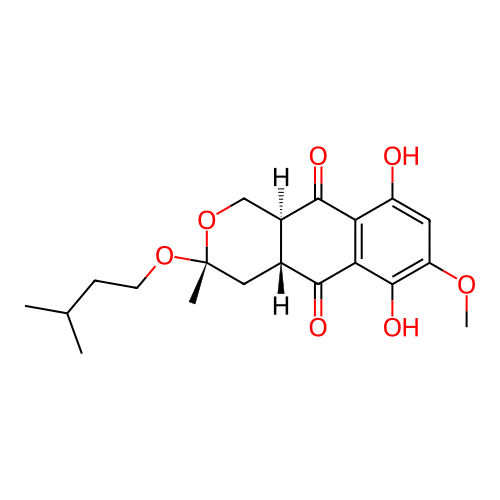 | InChI | InChI=1S/C20H26O7/c1-10(2)5-6-26-20(3)8-11-12(9-27-20)18(23)15-13(21)7-14(25-4)19(24)16(15)17(11)22/h7,10-12,21,24H,5-6,8-9H2,1-4H3/t11-,12-,20-/m1/s1 |