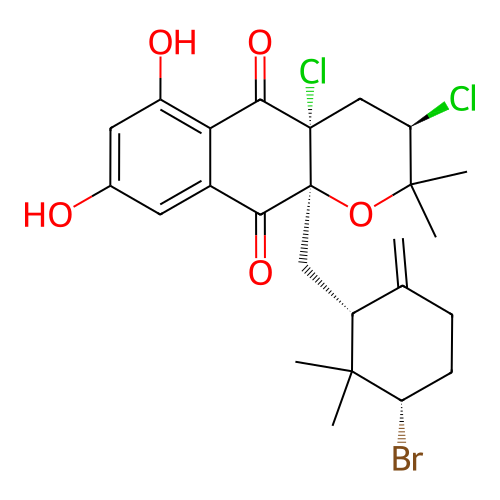 | InChI | InChI=1S/C25H29BrCl2O5/c1-12-6-7-17(26)22(2,3)15(12)10-25-20(31)14-8-13(29)9-16(30)19(14)21(32)24(25,28)11-18(27)23(4,5)33-25/h8-9,15,17-18,29-30H,1,6-7,10-11H2,2-5H3/t15-,17+,18-,24+,25+/m1/s1 |
