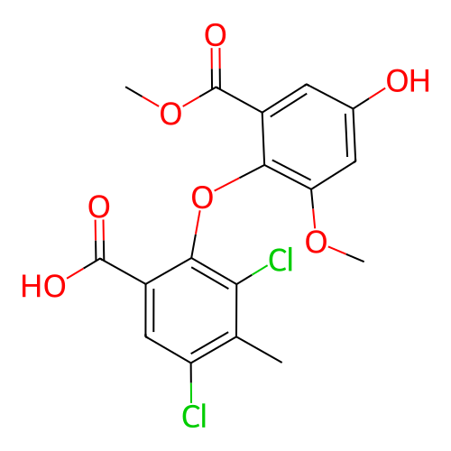 | InChI | InChI=1S/C17H14Cl2O7/c1-7-11(18)6-9(16(21)22)15(13(7)19)26-14-10(17(23)25-3)4-8(20)5-12(14)24-2/h4-6,20H,1-3H3,(H,21,22) |