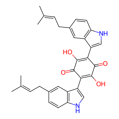| SMILES | CC(=CCC1=CC2=C(C=C1)NC=C2C3=C(C(=O)C(=C(C3=O)O)C4=CNC5=C4C=C(C=C5)CC=C(C)C)O)C |