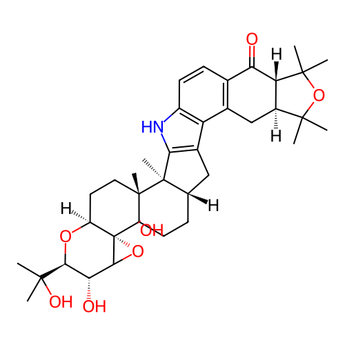 | InChI | InChI=1S/C37H49NO7/c1-31(2,41)29-27(40)30-37(44-30)23(43-29)12-13-34(7)35(8)17(11-14-36(34,37)42)15-20-24-19-16-21-25(33(5,6)45-32(21,3)4)26(39)18(19)9-10-22(24)38-28(20)35/h9-10,17,21,23,25,27,29-30,38,40-42H,11-16H2,1-8H3/t17-,21-,23-,25+,27+,29-,30?,34+,35+,36-,37-/m0/s1 |